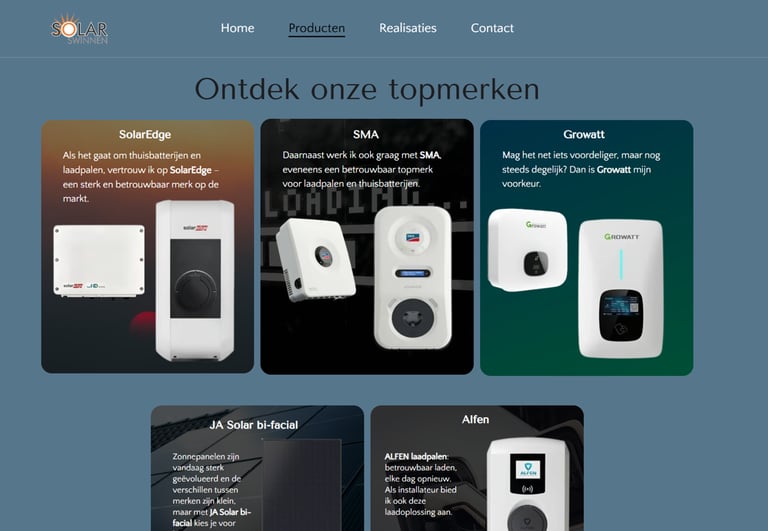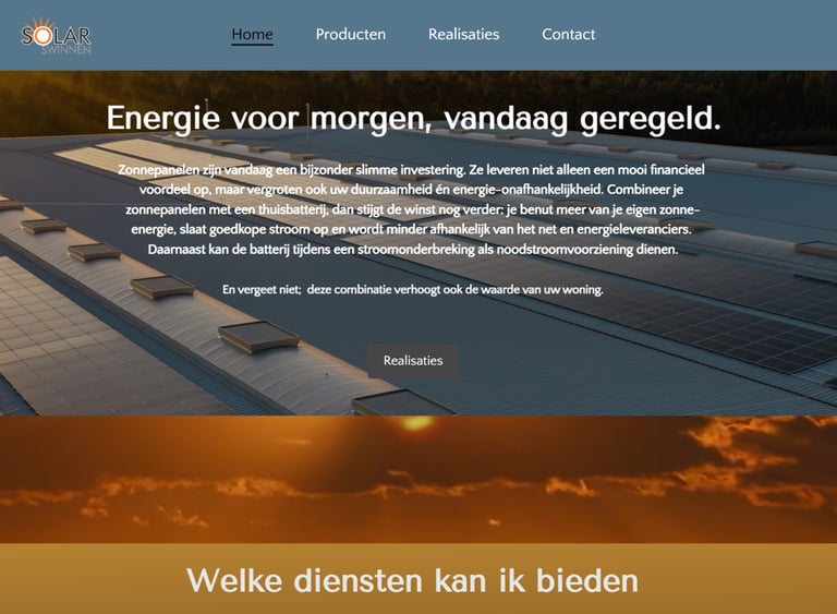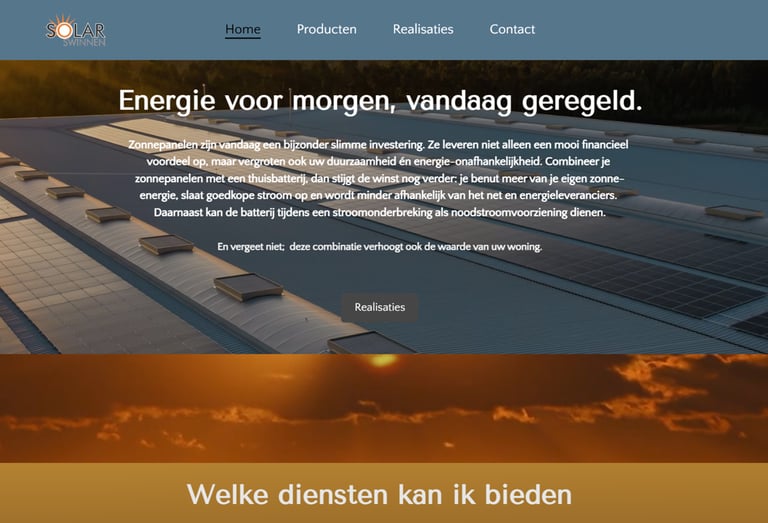 Website met een donkere, stijlvolle uitstraling — hedendaags, cool en overtuigend.